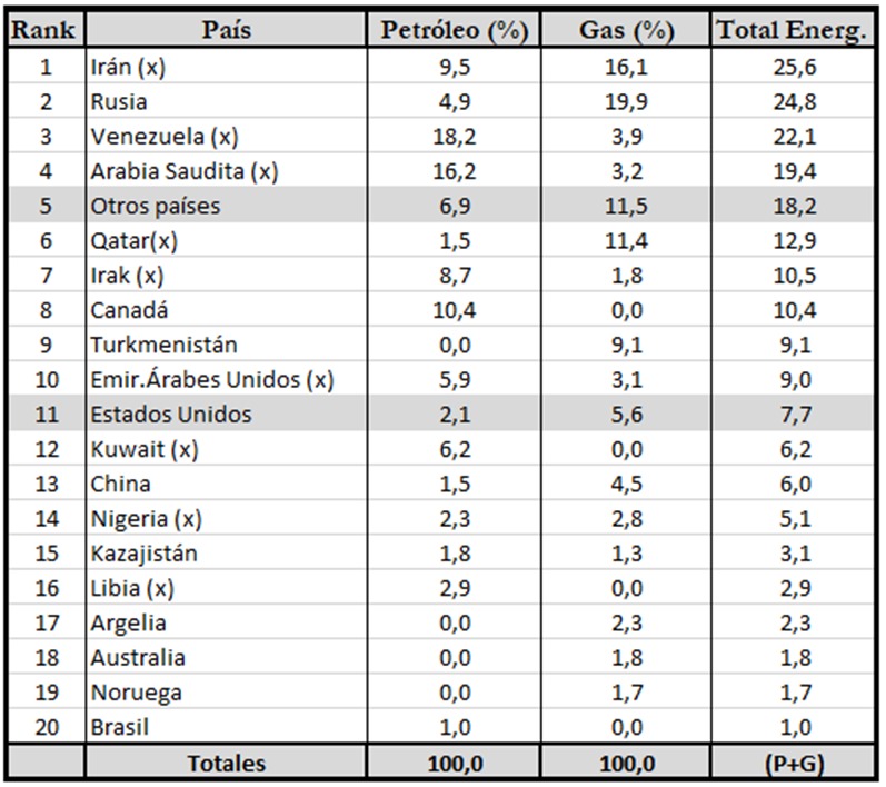 La respuesta es que en el subsuelo venezolano se encuentra comprobada la reserva petrolífera más grande del mundo a la que hay que sumarle las reservas de gas, lo que convierte al país caribeño en el tercer país del mundo con mayor reserva energética y como si esto fuera poco, quienes lo proceden son dos archi enemigos de Norteamerica: Rusia e Irán casi con los mismos valores que los venezolanos.